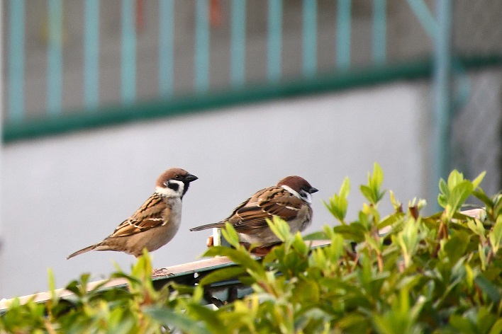 スズメが群れで遊んでいました。
