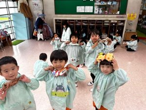 きょうも 幼稚園は、 こうして笑顔で始まりました。