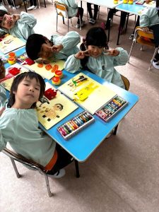 その当時、 私の記憶では まだ幼稚園でお顔にペイントを施す習慣は あまりなかったように思います。