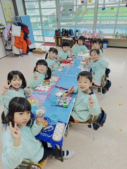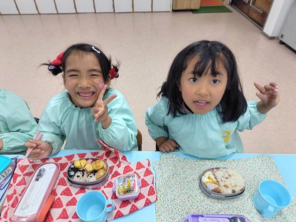 同じく こちらのクラスも楽しいお弁当タイムです。
