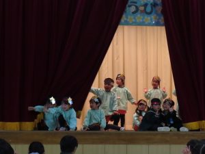 舞台に登場したのは 年少〇〇組さんです。
