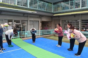 写真の3人の先生たちに、 幼稚園のお仕事を長く続けてきた功労に対して、 幼稚園連合会からの表彰があるのです。