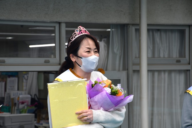 それに先立ち、 あす表彰される先生たちに 教職員一同がサプライズのお祝いをしました。