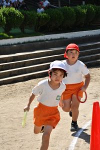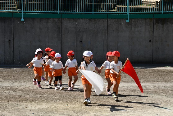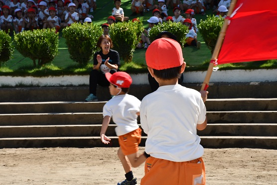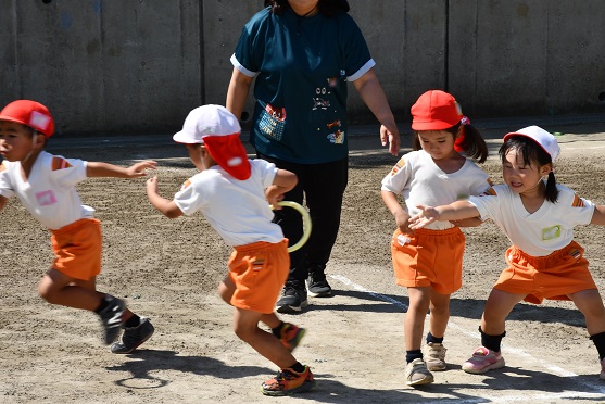 先生たちと一体になって 園庭いっぱいに広がり、 最高の笑顔を見せてくれます。