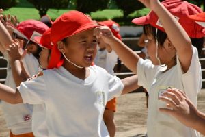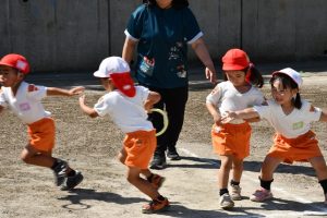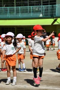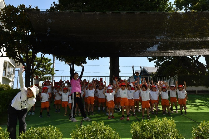軽快なリズムに乗って踊り、 躍動する年中さん。