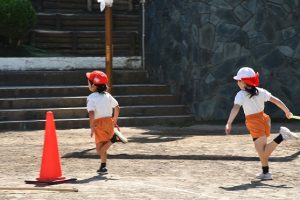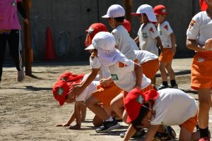 リレーの練習は、 選手たちも応援する子供たちも、 先生たちも、 みんな力が入ります。
