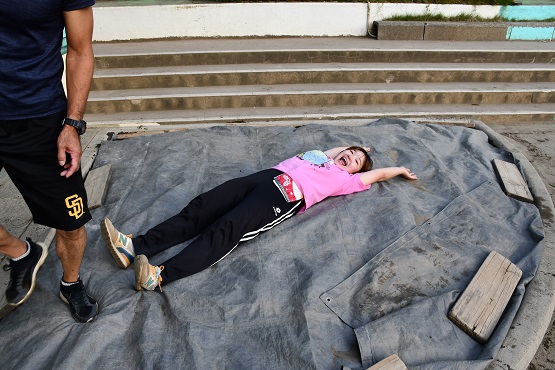 入れたばかりの砂が、 とてもふかふかで寝っ転がると気持ちがいいのです。